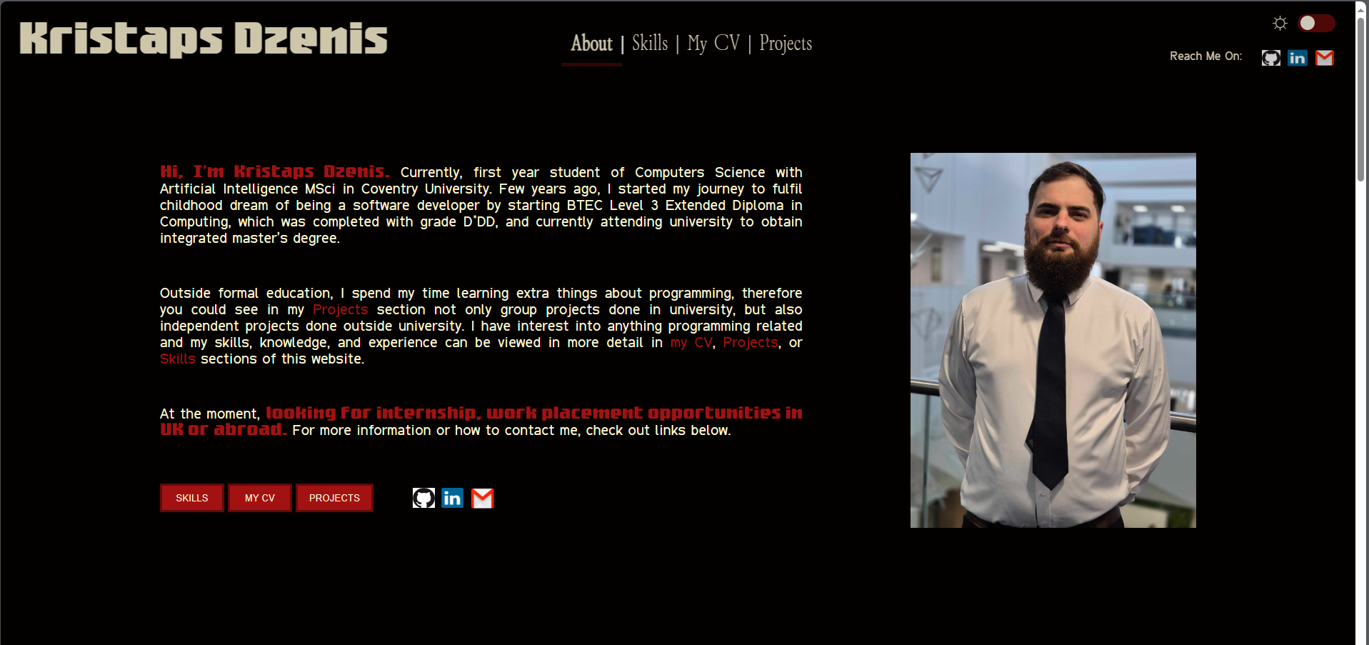 Hello, I’m Kristaps Dzenis. I am currently a second-year student pursuing an MSci in Computer Science with Artificial Intelligence at Coventry University. A few years ago, I embarked on my journey to fulfill my childhood dream of becoming a software developer by completing a BTEC Level 3 Extended Diploma in Computing. I am now furthering my education to obtain an integrated master’s degree.