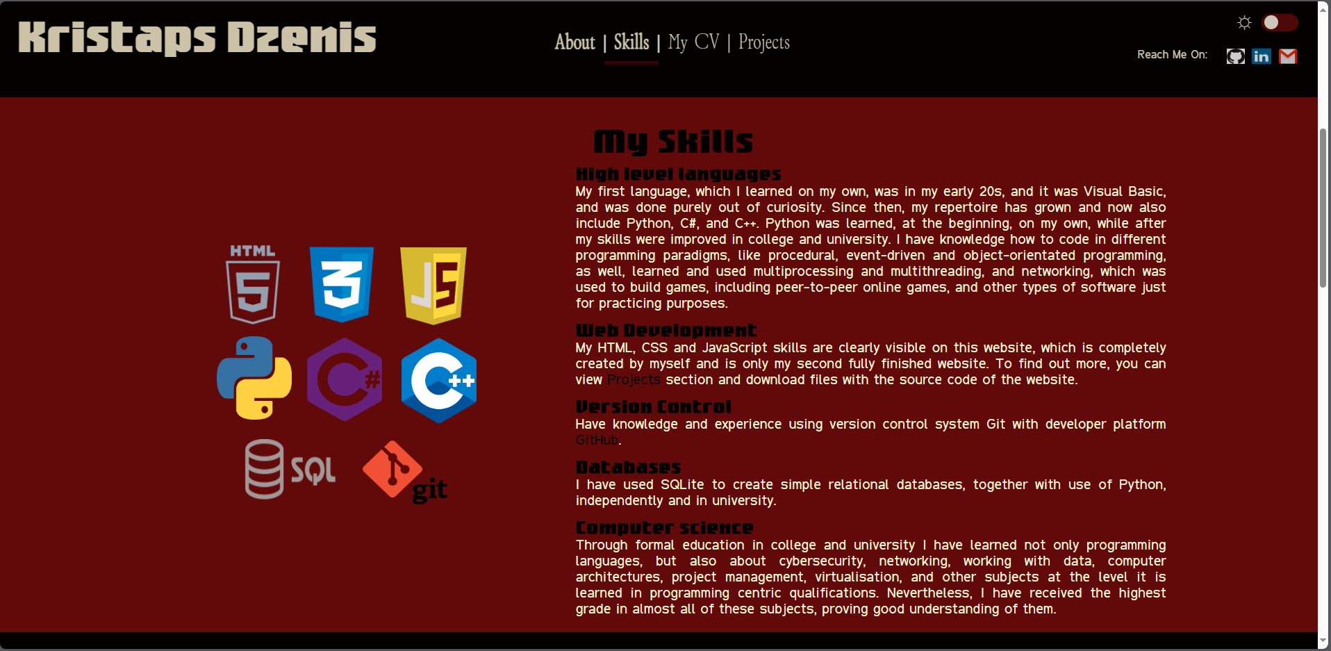 Beyond formal education, I dedicate my time to expanding my programming knowledge. In my Projects section, you will find not only group projects completed at university but also independent projects I have undertaken. I have a deep interest in all aspects of programming, and my skills, knowledge, and experience are detailed in the my CV, Projects, or Skills sections of this website.